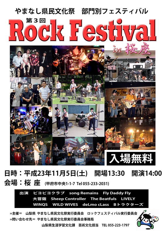 なんと山梨のアマチュアバンド11組が出演するらしく賑々しい雰囲気を予感しちゃいます。