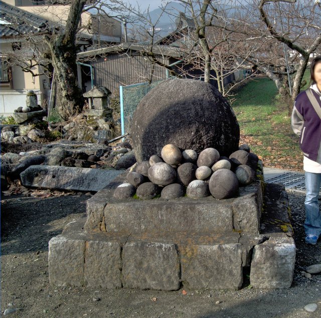 丸石が十五夜さんの団子のように盛られていたり、巨大(巨石)なものがあったりします。