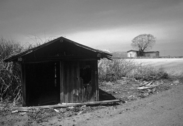 左の小屋から2mほど離れた距離から