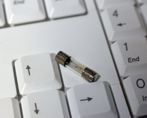 夏のうちに雷なんかで過電流が流れたのかしらと想像しながらガラスチューブ状のヒューズを取り出す。
