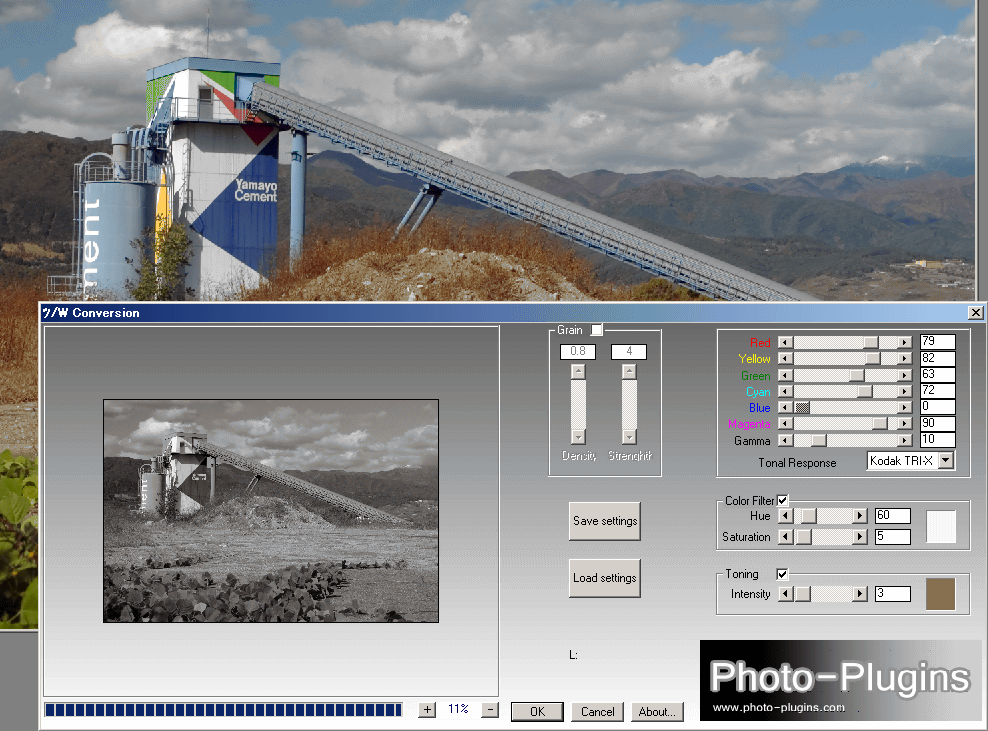 このモノクロ変換プラグインのすごいところは、KodakのモノクロネガフィルムのT-MAXやTRI-Xなどの質感をシミュレートするプリセットを持っているんです。